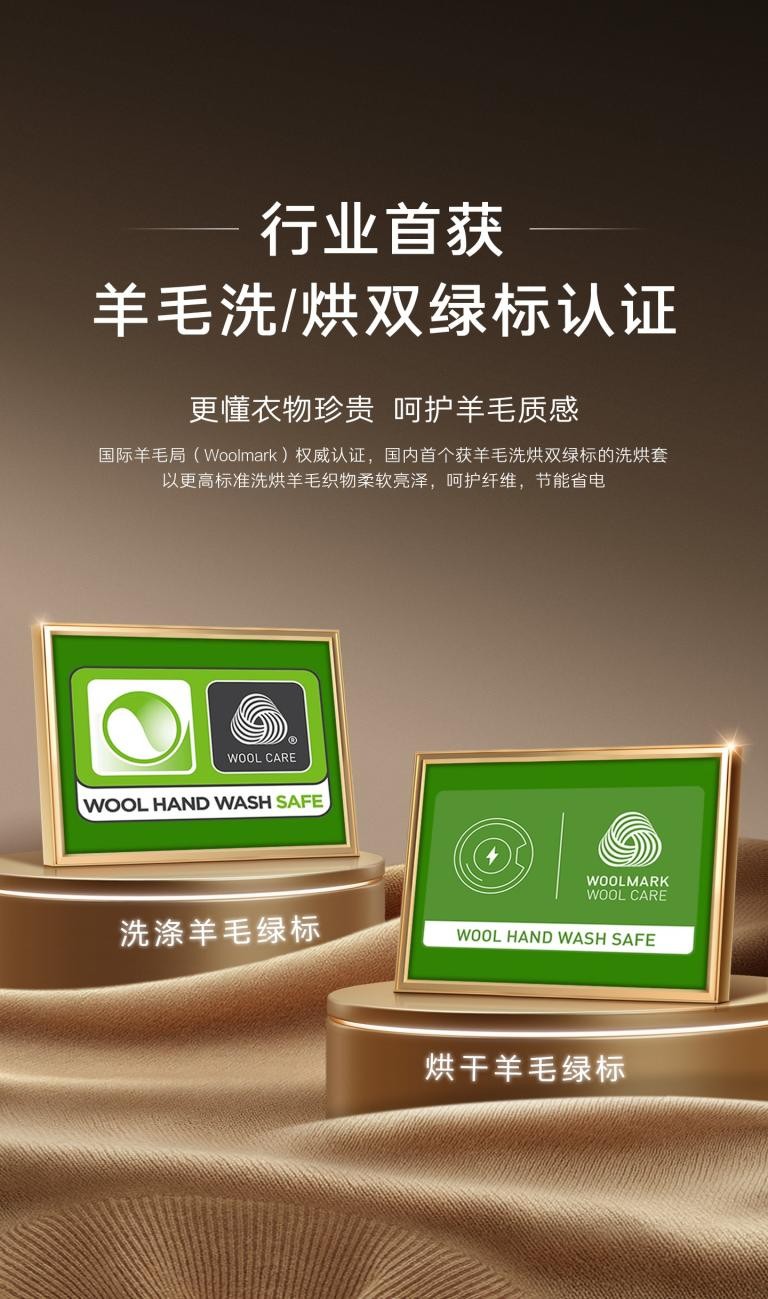 在专业羊毛养护上,卡萨帝洗衣机也为用户带来了有国家级认证的体验。卡萨帝指挥家系列洗烘套装获国内首个羊毛洗烘双绿标认证,成为国内首个羊毛洗烘双绿标认证的套系产品。这意味着该产品达到了羊毛洗烘最高标准的等级认证,为用户带来了顶级的呵护体验。