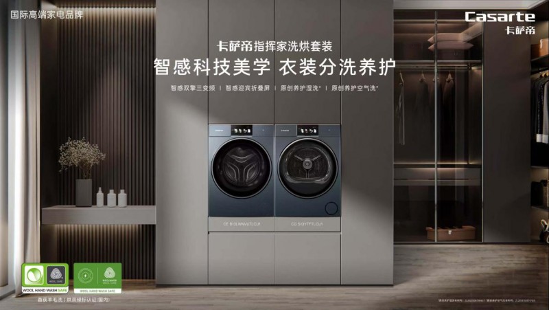 具体来看,从家装美学上,卡萨帝洗烘套装纯平外观的设计能一体融入家居环境,让用户体验完美的家居美学;从养护体验上,其原创的养护湿洗和养护空气洗科技为用户带来了纤维级养护的极致体验;从洗烘科技上,国内首个羊毛洗烘双绿标的行业最高级认证,为用户的洗护生活保驾护航。