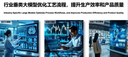 二:细分行业的大模型助力提升工业流程,提高生产效率及产品品质。通过定制化调整通用模型,打造行业专属模型,深入解析工艺数据,促进产业质量升级。