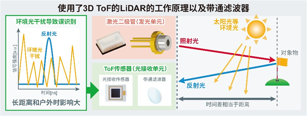 仅允许特定波长的光通过的滤光片。在光学元器件中,如果带通滤光片的通带较窄,可以有效地仅提取接近峰值波长的光,从而更大程度地减少阳光等环境光干扰的影响。这样,相同的检测距离功耗更低,相同的输出光功率可以延长检测距离。