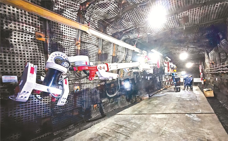 山东能源东滩煤矿“黑科技”机器人助力高效“架棚”。