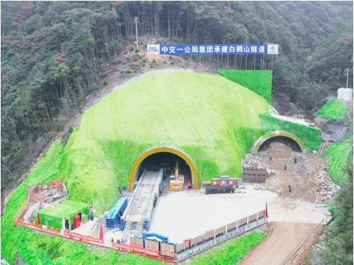 义龙庆高速丽水段项目由浙江交投高速公路建设公司牵头投资,主线路长93.05公里,是全国特长公路隧道群占比最高、超长连续隧道群最长的在建高速。中交一公局集团承建的土建5标主线长约11.154公里,工程量涵盖主线路基、1座桥梁和1.5座隧道,桥隧占比达95.7%。其中,白鹤山特长隧道全长7397米,为双向四车道分离式隧道,是义龙庆高速公路丽水段项目的关键控制性工程。