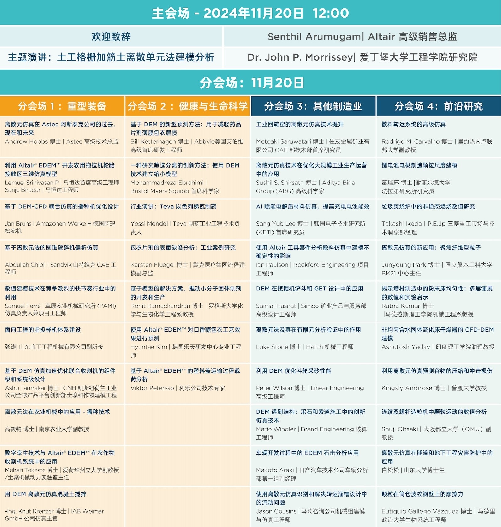 随着DEM在各行业与领域的不断深入以及现代科技的不断发展,其与人工智能、机器学习等现代技术融合,推动广泛行业实现了创新突破。为了进一步推进这一技术的发展,Altair将于2024年11月20日至21日举办全球离散元仿真技术(ATCxDEM)直播会议,展示全球范围内的行业应用及前沿研究,涵盖接近60场高质量演讲,涉及多个热门行业的技术进展。关注Altair澳汰尔公众号可以了解更多全球离散元技术分享。
