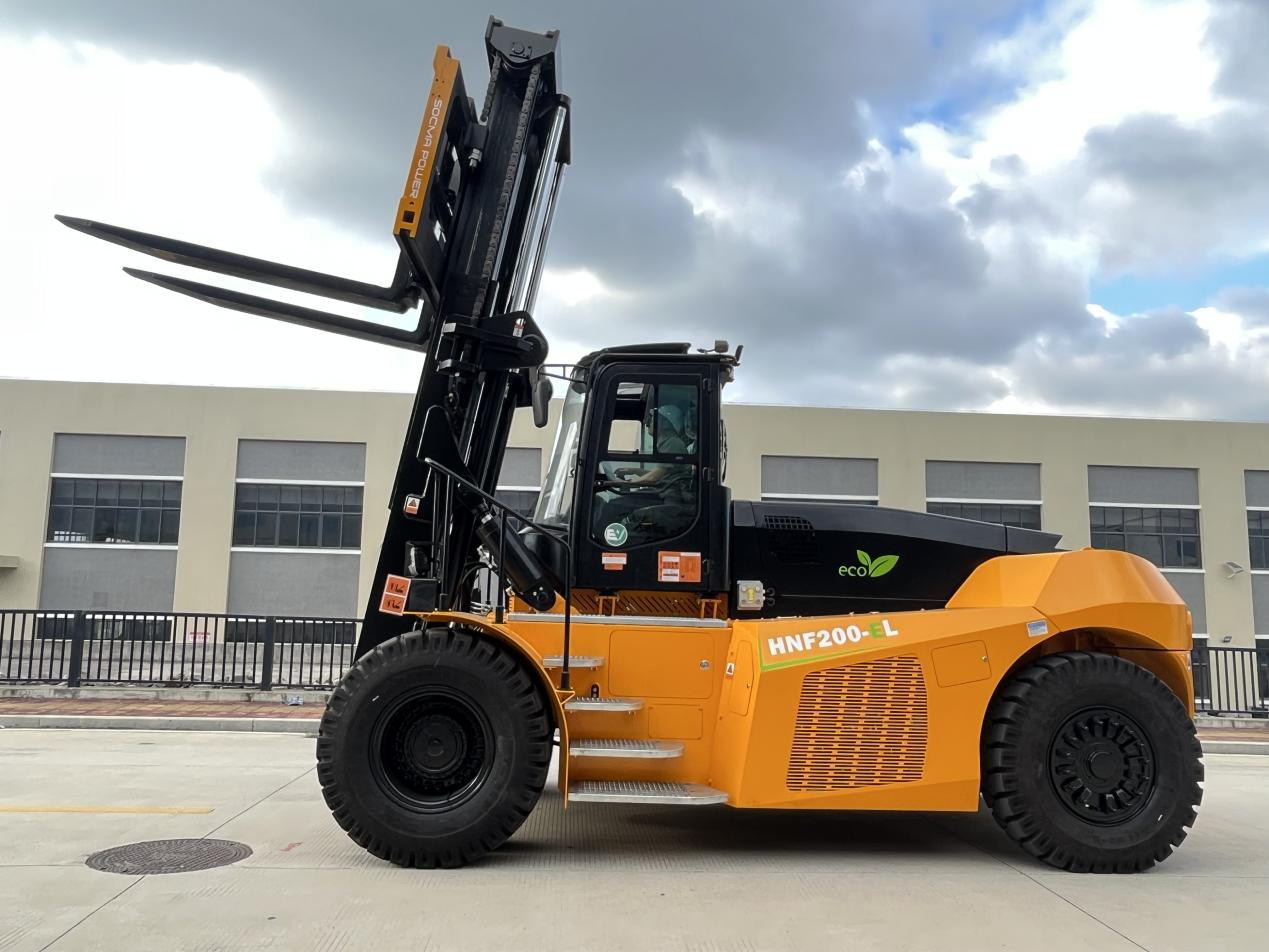 以HNF-500EL型50吨电动重型叉车为例,该产品不仅具有超低能耗、超低噪声以及超高性能等特点,还融合了多项创新性设计,如360度智能人机安全技术、智能辅助安全技术以及AI图像识别技术等,能够智能检测行驶路径内的行人,预防安全事故的发生。同时,先进的电池管理系统和能量回收技术有效延长了电池的使用寿命,降低了使用成本。