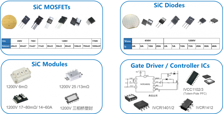 瞻芯电子开发的三大产品系列:SiCSBD,SiCMOSFET和驱动芯片,均有代表性产品通过了严苛的车规级可靠性认证,同时还了发布了一系列新重磅产品,如业界首款CCM图腾柱PFC模拟控制芯片IVCC1102、紧凑型SiC专用栅极驱动芯片IVCR1412、车规级1200V碳化硅(SiC)大电流MOSFET产品IV1Q12017T4ZG,并广泛应用于新能源汽车、光伏、充电桩、工业电源等领域,产品出货量快速增加,累计交付逾250万颗SiCMOSFET,570万颗SiCSBD,1900万颗栅极驱动芯片。