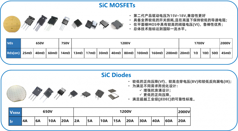 作为中国首家自主研发并掌握6英寸SiCMOSFET产品及工艺平台的公司,瞻芯电子已成功开发并量产了一系列技术指标领先、参数规格齐全、封装形式多样的高可靠性SiCMOSFET、SiCSBD和SiC模块产品,其中包括技术难度极高的车规级1200V17mΩSiCMOSFET芯片,其技术指标已达到国际一流水准。同时,多款SiC器件已通过车规级(AEC-Q)认证,并大规模应用于汽车领域。