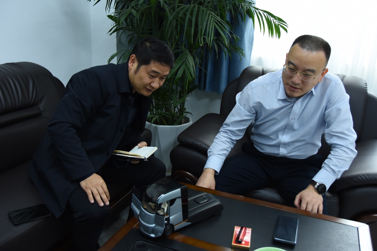 中电山西多式联运有限公司总经理何晓和记者分享甲醇重卡车模型 中国工业报 江平/摄