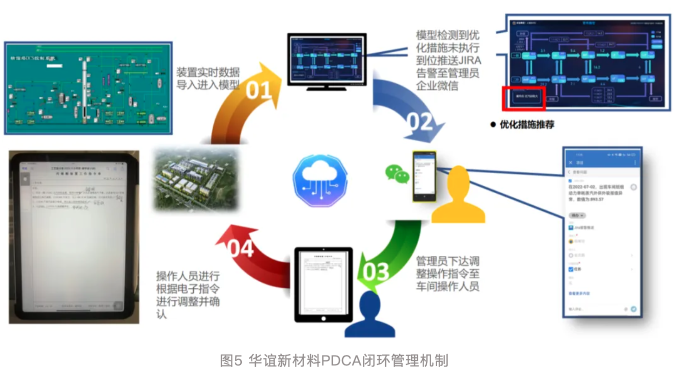 在指标优化方面,华谊新材料通过应用AI反应过程模型,实现主要原料损耗降低20%,带来可观的经济效益。同时,因华谊新材料损耗原料主要为碳氢化合物,在处理过程中会产生一定碳排放,因此物料损耗的降低实际等于过程碳排放的降低。