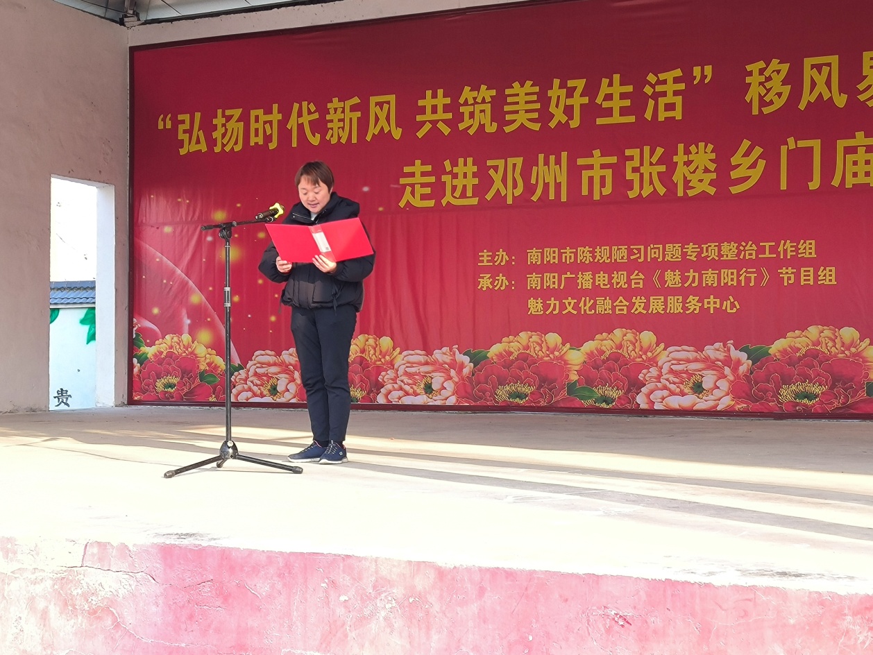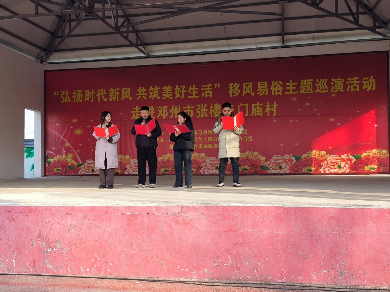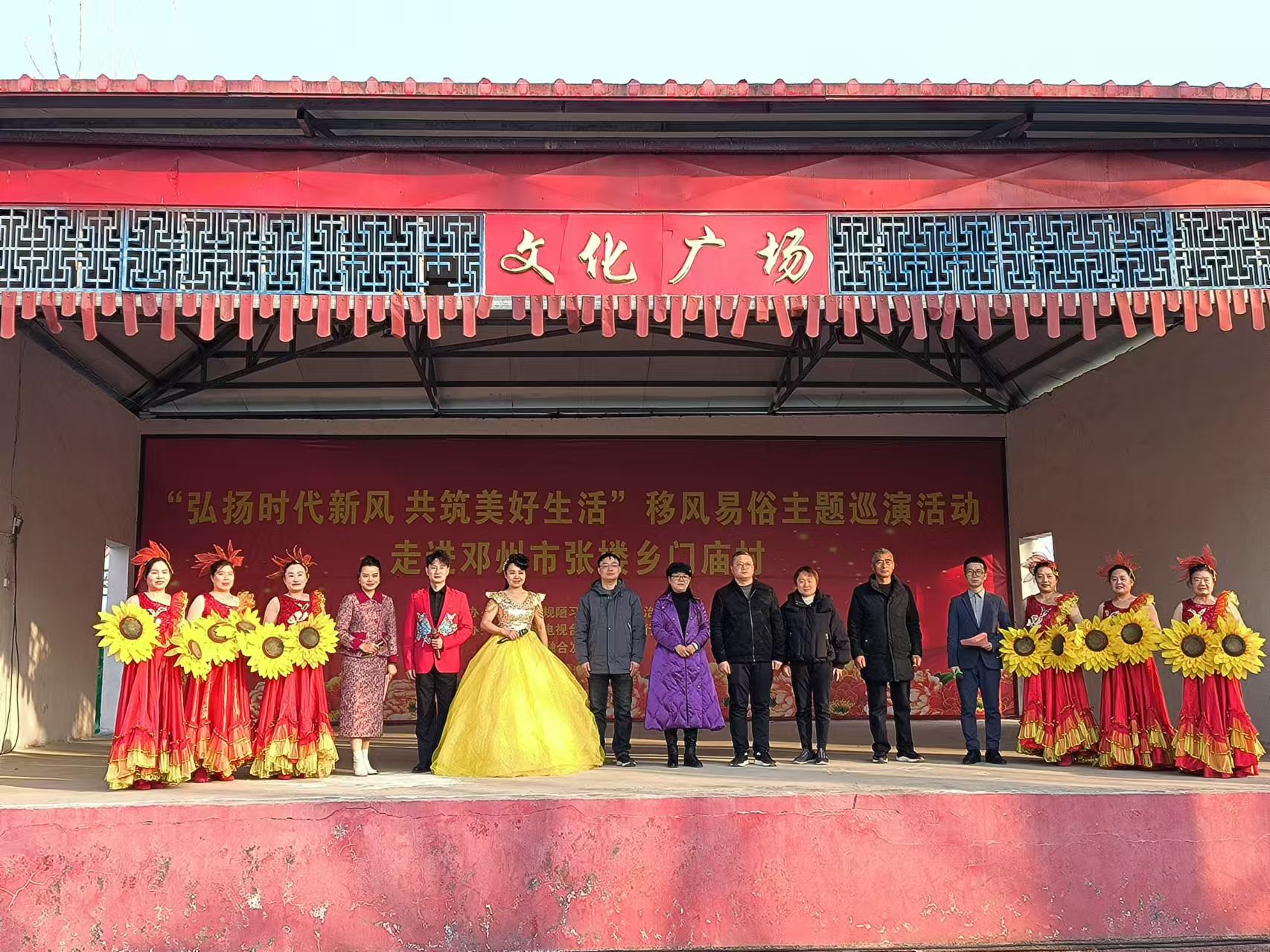 12月17日下午,阳光明媚的冬日里,河南省南阳市“弘扬时代新风共筑美好生活”移风易俗主题巡演活动在邓州市张楼乡门庙村的文化广场上热闹上演。