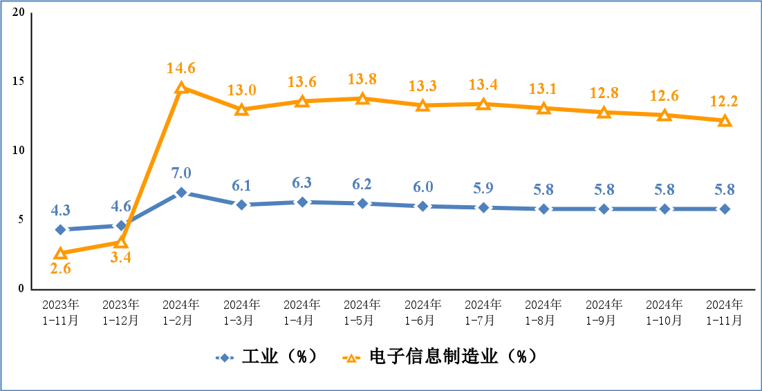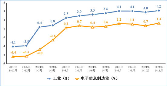 2024年1—11月份,我国电子信息制造业生产增长较快,出口持续回升,效益稳定向好,投资增势明显,行业整体发展态势良好。
