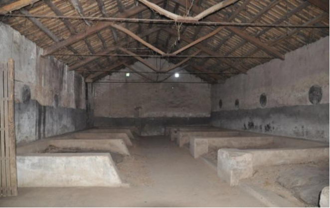 皇沟酒业陆楼酒坊旧址位于河南省商丘市永城市,该遗址保留了明清时期的古窖池11条,以及酿酒车间、酒精塔、原酒仓库、发酵窖池厂房、成品库房、生产车间、科研场所等丰富的历史遗迹。这些物项不仅见证了皇沟酒业悠久的历史,更体现了其在酿酒工艺和文化遗产保护方面的卓越贡献。