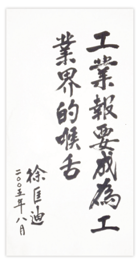 第十届全国政协副主席、中国工程院原院长、中国工业经济联合会名誉会长徐匡迪同志曾为报社题词:“工业报要成为工业界的喉舌”。