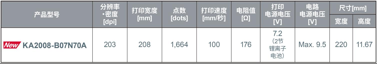 全球知名半导体制造商ROHM(总部位于日本京都市)开发出支持2节锂离子电池驱动(VH=7.2V)的8英寸热敏打印头“KA2008-B07N70A”。