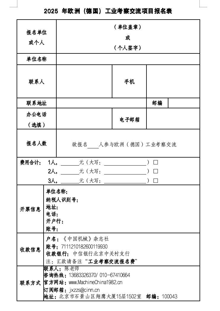 附件:2025年欧洲(德国)工业考察交流项目报名表