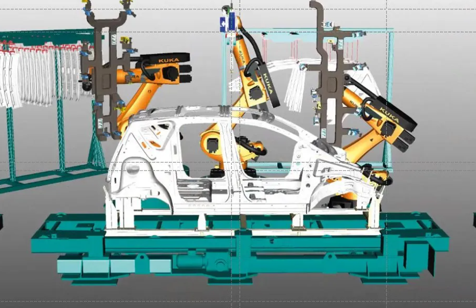 通过数字化选择必要的设备和设计生产单元,可以模拟生产单元中所有部件的相互作用。这包括为焊接和搬运机器人编程,以及优化生产周期以实现高产量等任务。