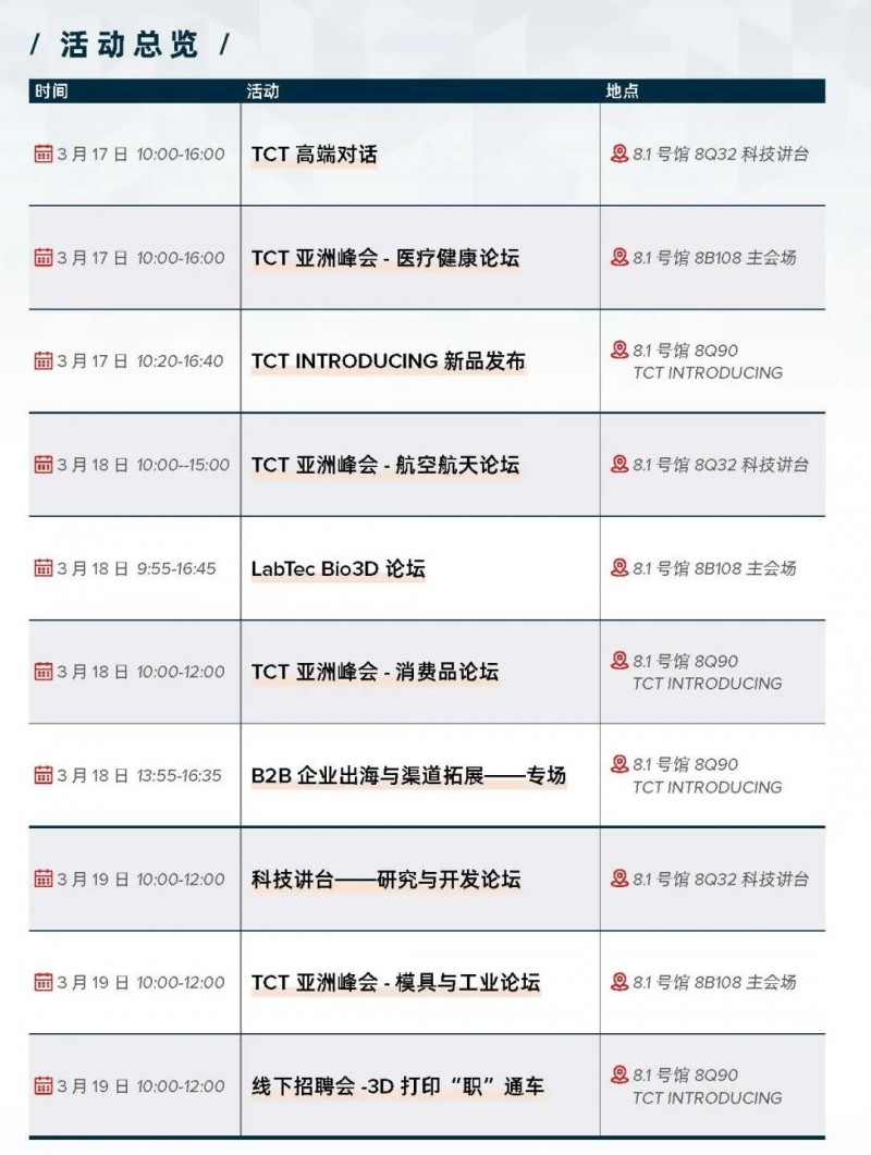 聚焦实际应用,并与展会现场展示的技术、设备相结合,打造全新的活动体验;提供专业、高度聚焦的会议、研讨会和其他专业内容,并营造交流互动的氛围;帮助设计师、工程师和买家评估、采纳和优化配置,以满足他们对于增材制造的真正需求。
