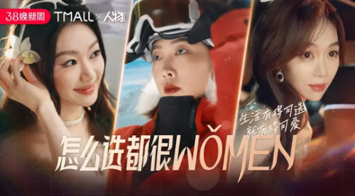 天猫联合《人物》杂志发布《怎么选都很wǒmen》品牌态度片。邀请歌手单依纯、演员姜妍、奥运冠军徐梦桃作为“天猫38焕新品牌大使”,将口号具象化为“每一次选择都是对生活的热爱”。她们有不同的职业、性格和风格,但都展现了女性的多面性。