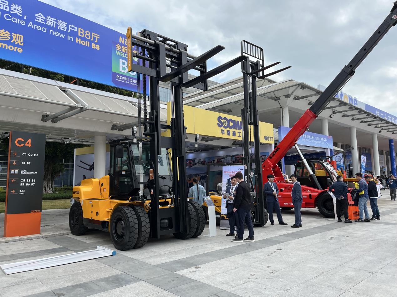 泉州装备协会副会长单位——华南重工展出最新升级专利产品HNF-120S内燃叉车及HNT-120伸缩臂叉车,以灵活性与高负载能力吸引关注。近年来,华南重工在创新研发及产品定制化开发等方面不断结新果创新篇,彰显除了强大的技术基底和创新优势。