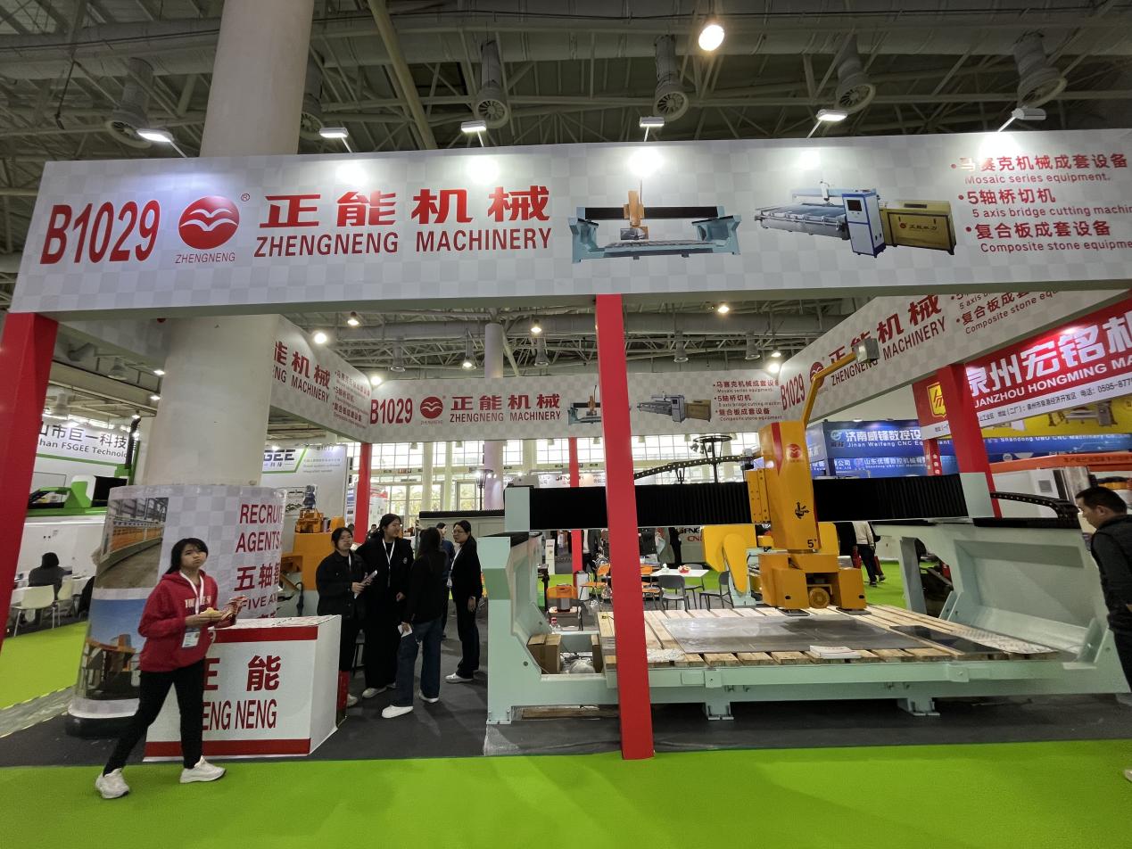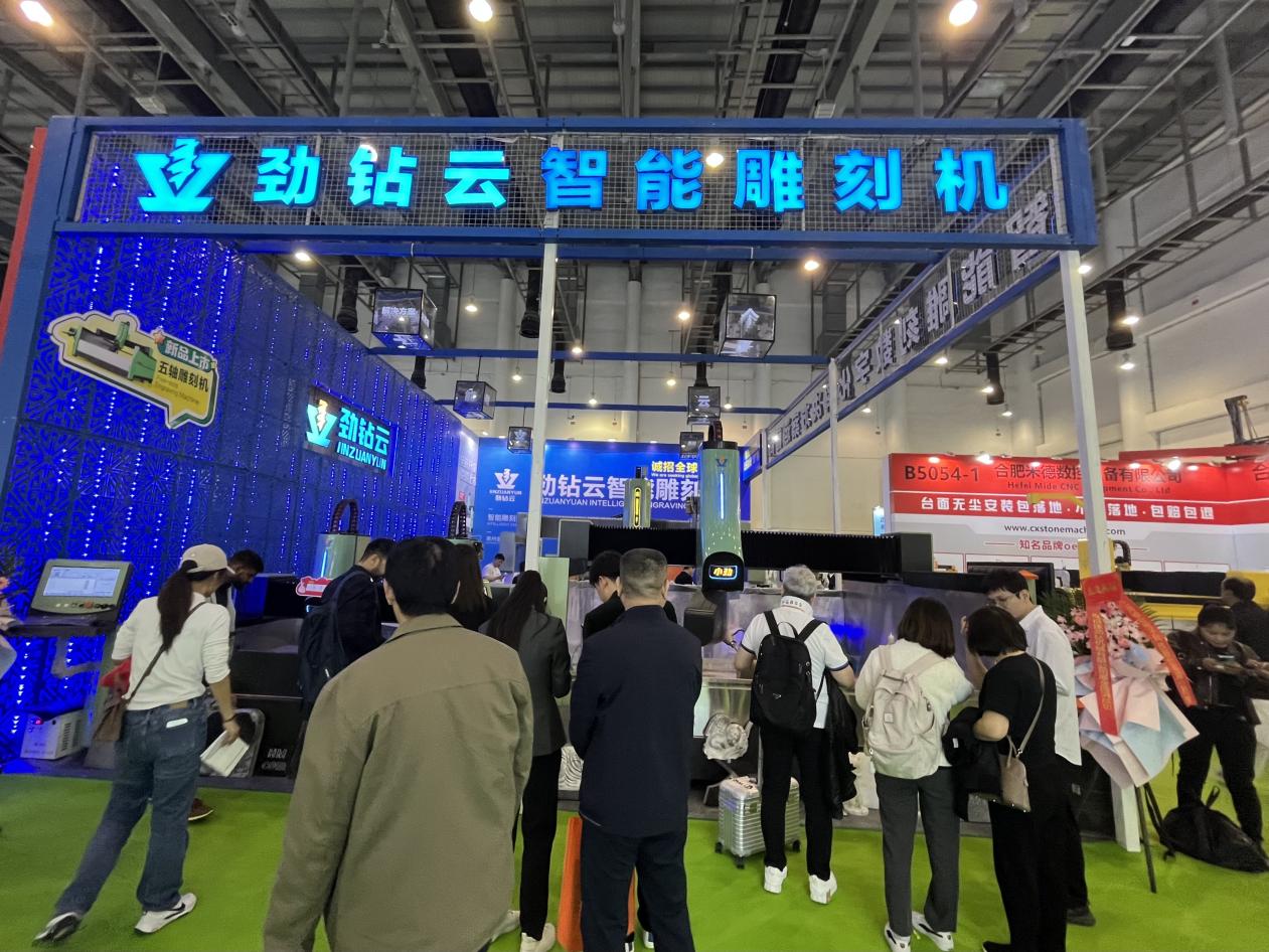 泉州装备协会理事单位——劲钻机械携智能雕刻机、五轴雕刻机及五轴桥式一体切割机亮相。其设备搭载自主控制系统与高精度传感器,可自动识别石材纹理并完成复杂雕刻,五轴联动技术更支持异形石材高效加工,推动设备迈向自动化、精密化,现场即有多家客户签单。