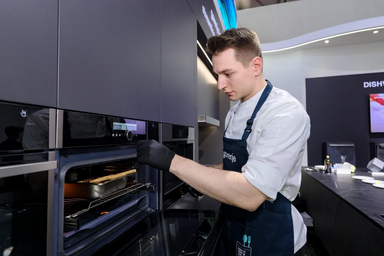展会现场,琴声悠扬,引得无数来宾驻足聆听。艺术家电gorenje特邀设计师袁宗磊来到现场,感受艺术家电的温度与美好,现场更有意大利星厨Milko以gorenje品牌成立75周年为灵感,烹饪专属佳肴,带人们感受美食与家电艺术交融的乐趣。