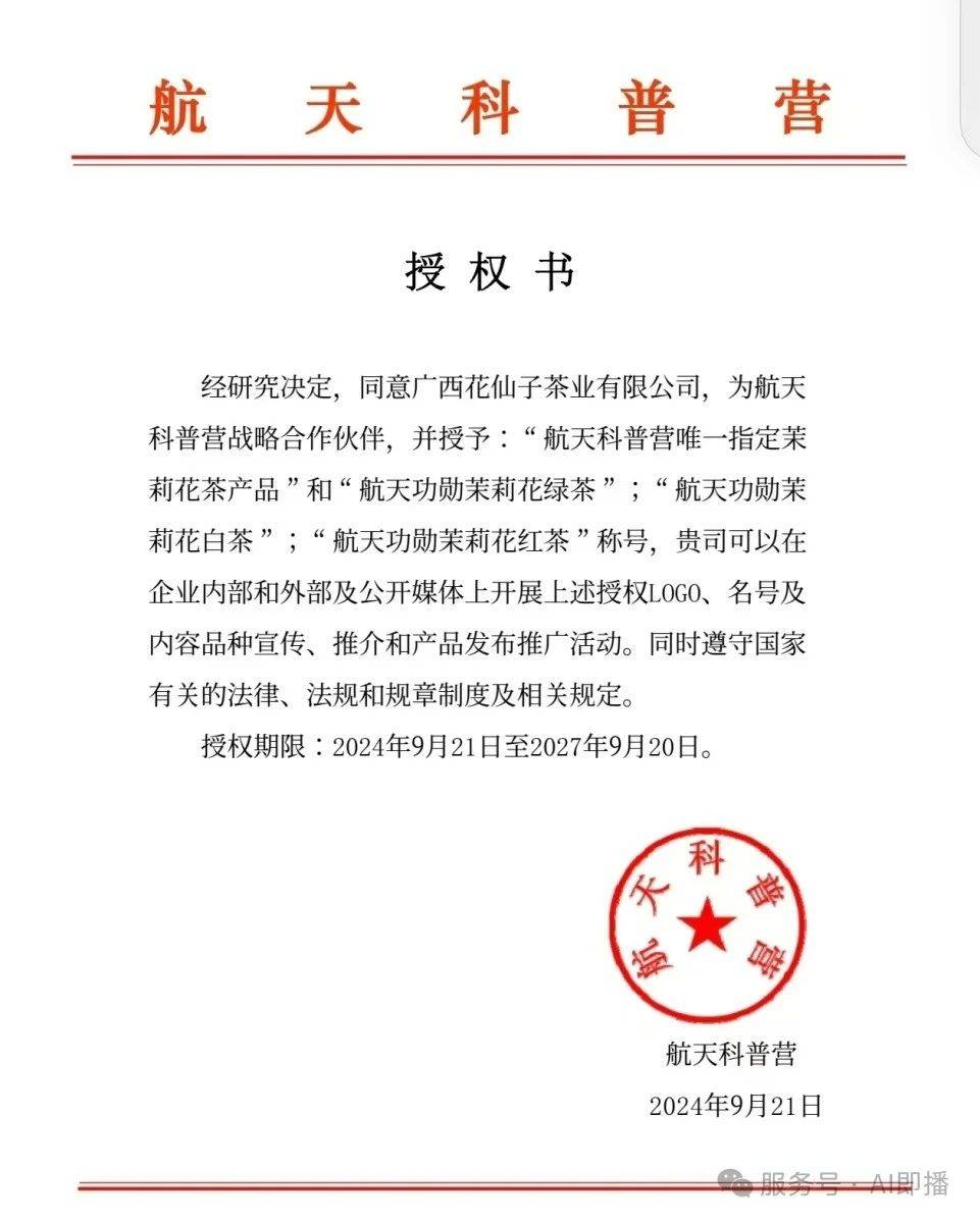 据悉,早在“芳茶师”茉莉花系列茶征战巴拿马之前,其卓越品质便已获得航天领域的高度认可。航天成果转化中心负责人曾两次深入广西花仙子茶业有限公司实地考察,从茶叶种植基地到生产加工车间,每一个环节都经过严谨评估,企业先进的生产工艺与严苛的品质把控赢得了考察团的一致好评。最终,在众多茶品中选中“芳茶师”三款茶产品被命名为“航天功勋茶”。同时,广西花仙子茶业有限公司被授予“航天科普营指定茉莉花茶产品”称号,旗下“航天功勋茉莉花绿茶”“航天功勋茉莉花白茶”“航天功勋茉莉花红茶”三款产品也被赋予专属殊荣。这不仅是对“芳茶师”产品品质的认可,更让品牌与航天精神深度融合,为其赋予了独特的高端品牌内涵。