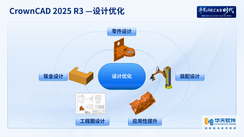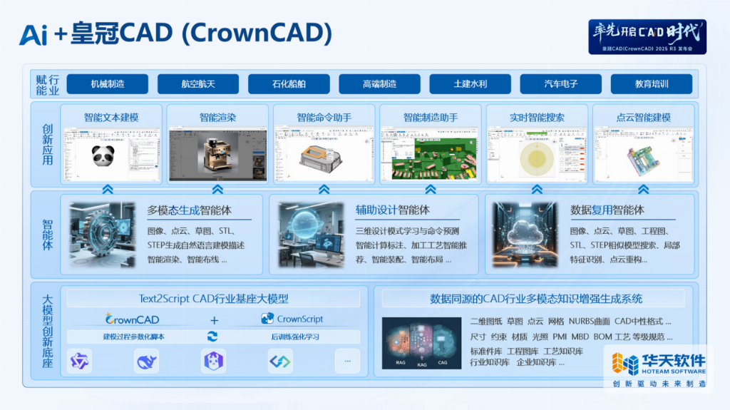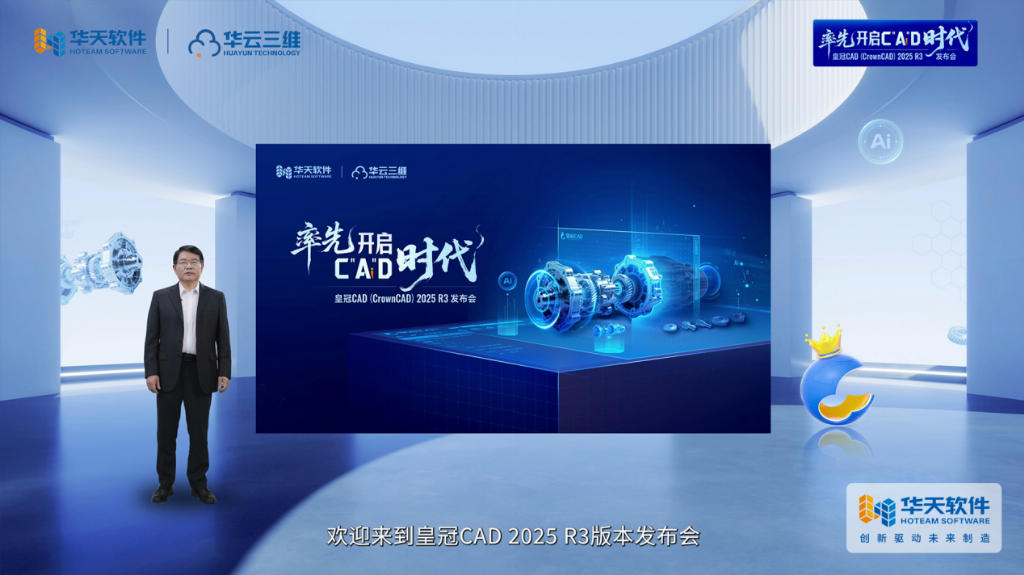 2025年4月28日,华天软件以“率先开启C‘Ai’D时代”为主题,通过线上发布会向全球用户推出皇冠CAD(CrownCAD)2025R3版本。华天软件首席科学家梅敬成博士作为主讲人,在发布会上展示了公司在AI技术与工业设计深度融合领域的重要突破,标志着中国工业软件正式迈入“智能驱动研发”的新阶段。