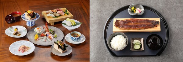 左:鮨政寿司菜式—厨师发办;右:四代目菊川鳗鱼料理菜式—名物一本蒲烧定食