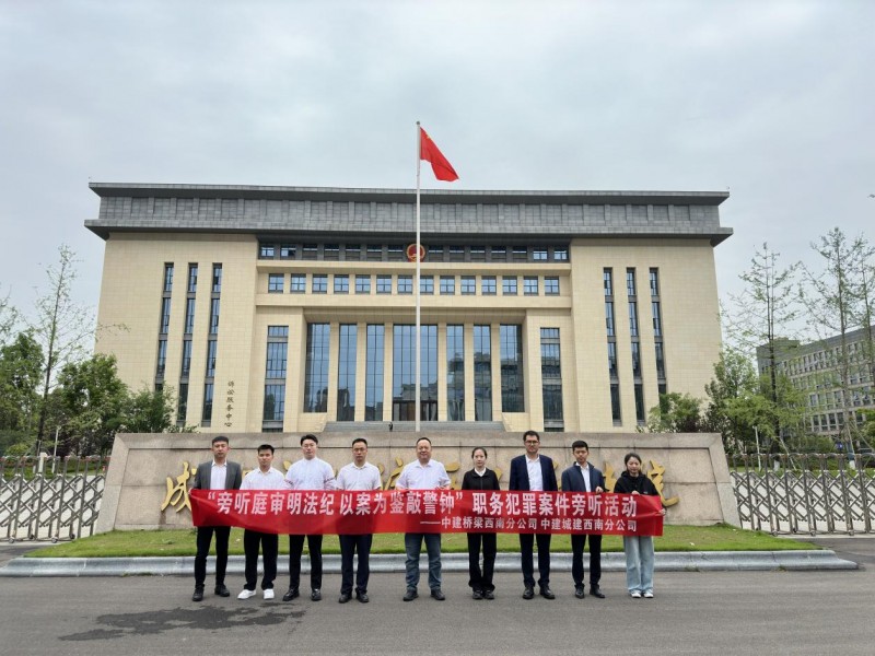 为进一步强化关键岗位人员及年轻干部法治思维和廉洁意识,4月29日,中建六局城建西南分公司联合中建桥梁西南分公司,组织年轻干部及关键岗位人员赴成都市双流区人民法院,开展“旁听庭审明法纪以案为鉴敲警钟”职务犯罪案件旁听活动,“零距离”接受警示教育。