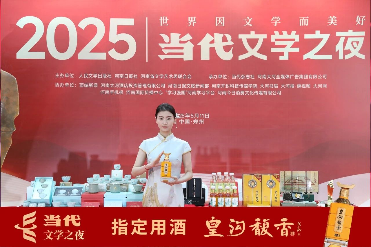 活动现场,名家新秀、读者书迷以文学的名义相聚绿城、深度对话,文学蓬勃的力量跃出字里行间。美酒美文化,美酒与文化相互交融,为这场文化盛宴增添了别样的色彩,皇沟馥香作为2025当代文学之夜指定用酒亮相活动现场,以深厚的文化底蕴与卓越的品质再次证明豫酒新势力标杆企业的不凡实力,为盛典添香增彩。