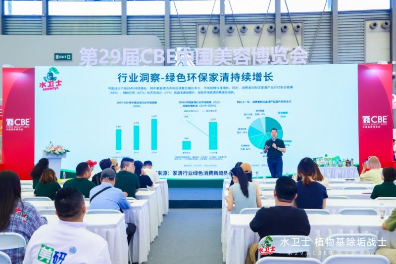 2025年5月12号到5月14号,第29届CBE中国美容博览会在上海新国际博览中心盛大举办。水卫士作为国内首家提出植物基除垢的品牌,惊艳亮相E6家清馆,并于5月14日10:00召开了以“植物源力净享未来”为主题的品牌发布会,正式发布中国首个植物基除垢家庭清洁品牌战略。水卫士正通过技术迭代与商业模式升级,改写传统日化行业的竞争格局。