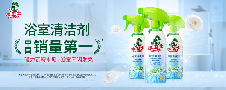 ·浴室清洁剂,专为清除浴室玻璃、水龙头等表面的顽固水垢、皂垢设计。用户反馈显示,其水垢清洁效果出色,尤其对淋浴房玻璃的清洁表现突出;同时,产品气味温和,相较于强酸类清洁剂更具亲和力。在当前浴室清洁剂市场竞争激烈的情况下,清洁剂的功能性(如抑菌、无痕)和环保性成为产品的核心卖点。水卫士凭借突出的植物基环保配方和抑菌性能,精准把握市场需求,强势获得中国浴室清洁剂销量第一的宝座。