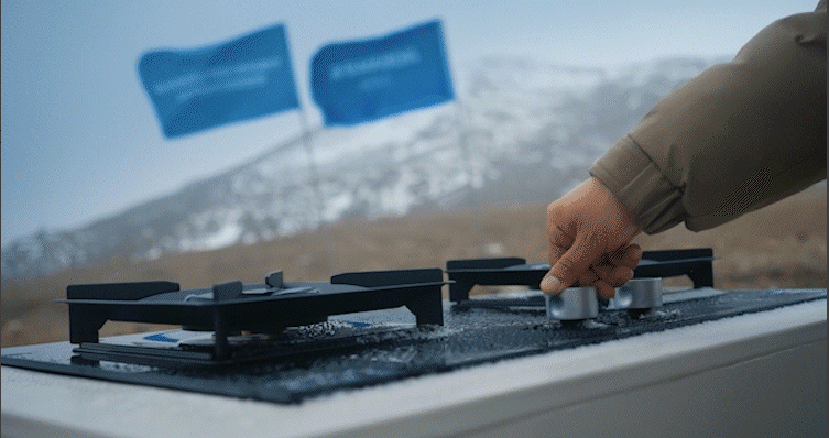 挑战一——高原低氧点火。在氧气含量只有平原地区一半多的稀薄空气中,老板燃气灶凭借多维度高效燃烧系统与风洞增速科技,负压设计让燃气灶在点火瞬间像鲸吞一样,猛烈吸一口气,将有限氧气充分混合,一簇簇稳定的蓝色火焰升起,在极度低温低氧空气中连续燃烧24小时未熄灭,成功通过测试。