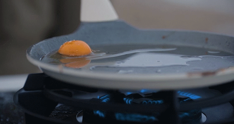 挑战四——匀火挑战。在极限环境下,老板燃气灶现场煎制的鸡蛋,蛋白边缘金黄酥脆,蛋黄中心凝而不溏,说明锅底火力分布非常均匀。这得益于3D速火技术匹配的224个黄金三角出火孔、28个出火面,全方位无死角加热,受热面积提升52%。