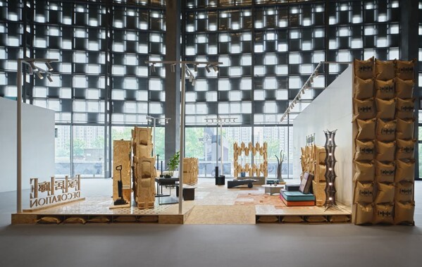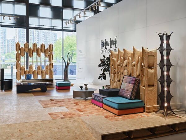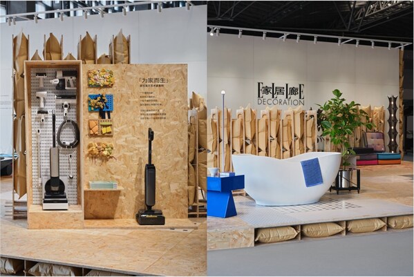 家居廊特邀第四力量AtelierFORTHFORCE,以"CHAI-AIRSYSTEM"构建了一座可呼吸的生态展陈空间。主体结构由再生纸气袋、可回收欧松板、二手市场回收饰面三种媒介搭建而成,天然材质的原始肌理与大地色系形成和谐的整体视觉,摒弃人工染色,让"废弃"焕发新生。