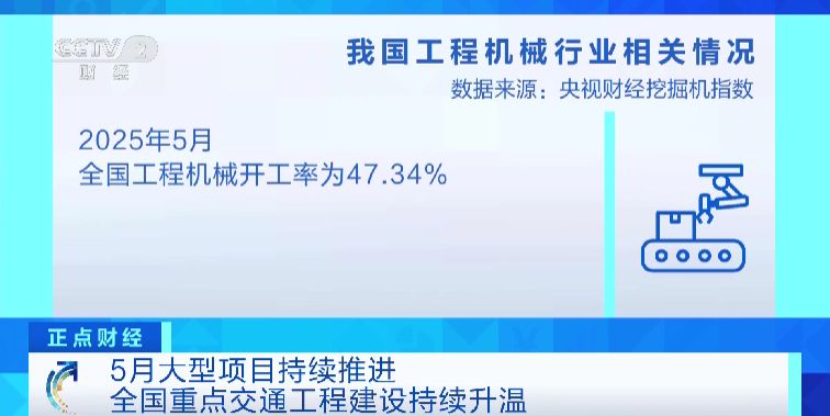 “央视财经挖掘机指数”显示,2025年5月份全国工程机械开工率为47.34%。