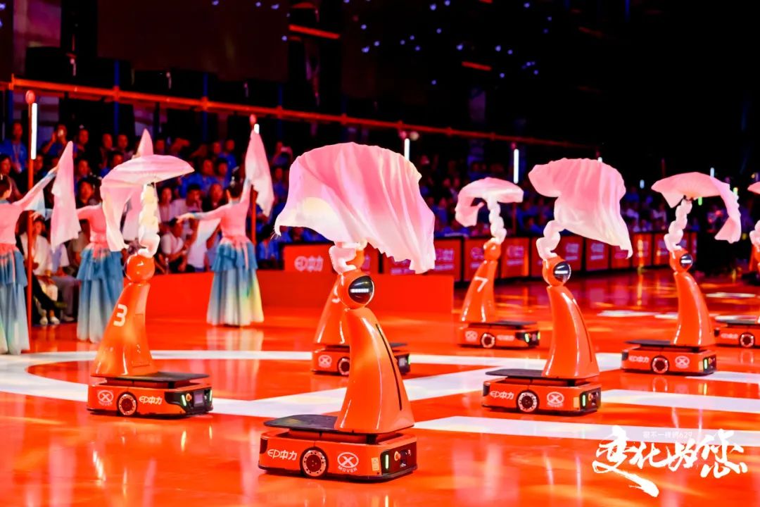 舞台灯光渐暗,悠扬的《梁祝》旋律缓缓响起。中力搬运机器人与具身拣料机器人化身“舞者”,与人类舞者携手共舞。具身机器人以精准的机械臂动作配合舞者轻盈的身姿,时而缠绵悱恻,时而激昂热烈,科技的冷峻与人文的浪漫在此完美交融。
