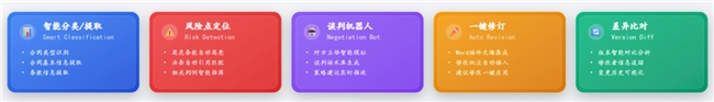 基于大语言模型,如deepseek,qwen等,凭借强大的语义理解能力,精准处理合同文本分类、风险条款识别、谈判话术生成等复杂语⾔任务,同时采⽤RAG方式整合企业案例、合同模板等多源知识,为各类任务提供企业/行业特有的知识注⼊。
