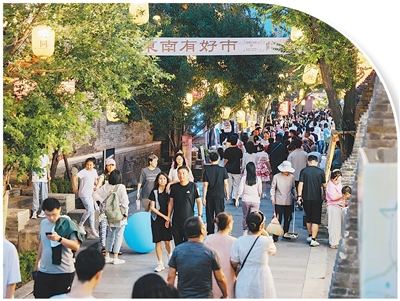 目前,东南邑历史文化街区有80家商铺,商铺主理人绝大部分都是像赵海这样的本地年轻人,以创意和热情为古老的街区注入了新的活力,激发城市消费潜力。