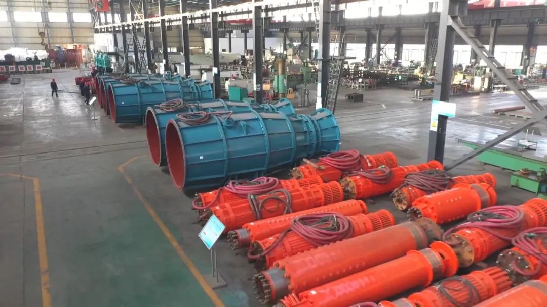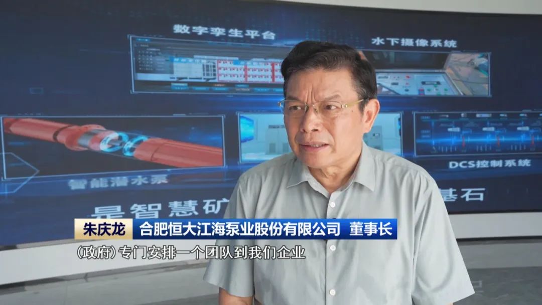 这里是合肥恒大江海泵业公司的生产车间,大家看到的这些大家伙是企业最新研发的新一代智能潜水电泵机组,通过叠加数字孪生技术,它们组装完成后可进行地下1200米的采水作业,目前,这些产品已在海外市场广泛应用。