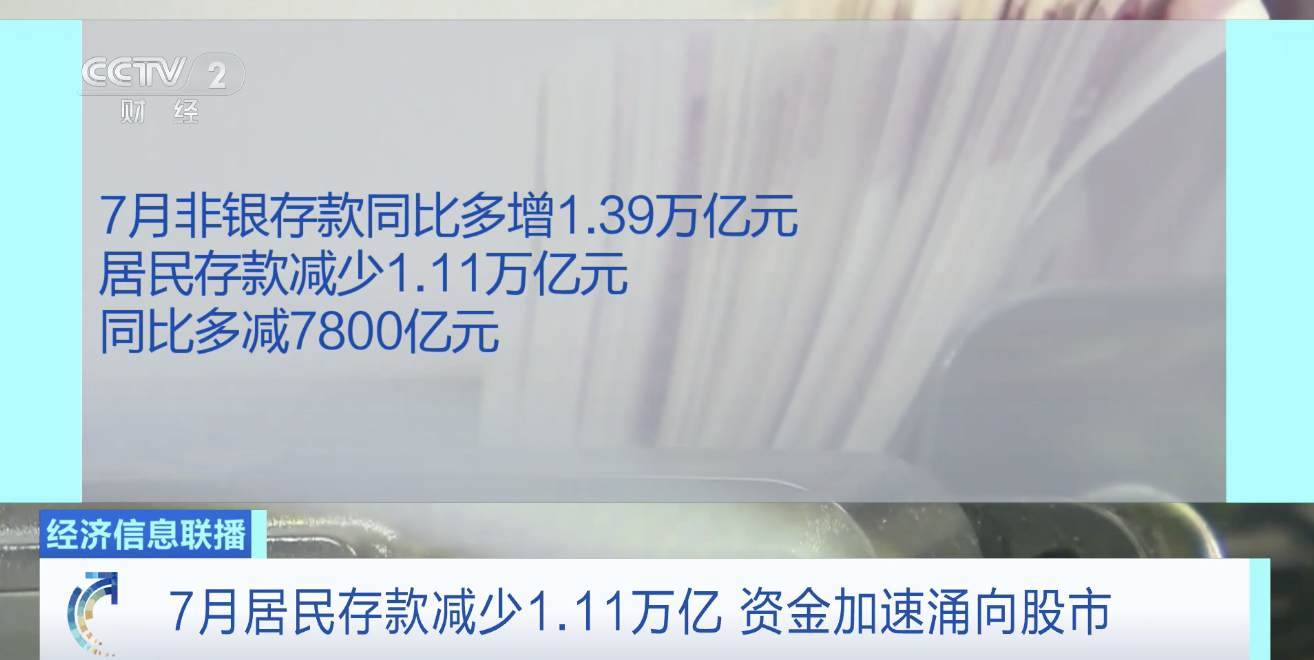 数据显示,7月非银存款同比多增1.39万亿元,而居民存款减少1.11万亿元,同比多减7800亿元,形成了明显的“跷跷板效应”。专家分析,存款利率持续下行、股市走强以及居民理财需求上升,推动资金从居民存款转向非银机构。