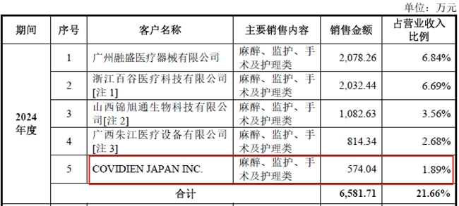 在稳固国内市场的同时,海圣医疗也积极拓展海外市场,产品已通过2项美国FDA注册,多项产品取得欧盟CE认证,成功打入国际市场。2022年至2024年,公司境外收入占比从8.58%提升至13.02%,国际化步伐持续加快。值得关注的是,海圣医疗已成功进入全球医疗器械百强企业美敦力的供应链。2024年,海圣医疗第五大客户为美敦力旗下的COVIDIENJAPANINC.(柯惠医疗)。