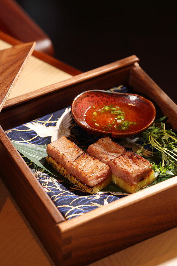 焦糖和牛凤梨-微炙和牛搭配焦糖凤梨,牛肉的丰腴与凤梨的酸甜在口中碰撞,清爽解腻,带来独特的味觉惊喜。甜酸平衡之间,幸福感满溢。