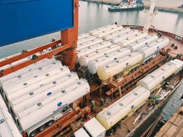 本次作业的核心挑战在于工程设备的精密叠装——重型卡车头与大型油罐需采用间隙仅10厘米的叠装工艺,对吊装精度要求极高。烟台港应用“智慧理货+智慧配载”模式,精准规划定位各类工程车辆,精确控制车辆间距,既保证装卸要求,又实现舱容空间的最大化利用。面对舱内货物平整度难题,烟台港充分发挥“一船一策”优势,制定“木架稳货+托盘定位”的复合装卸方案,门机司机与地面指挥紧密协同,通过吊钩微调实现厘米级精准落位,高效攻克精密叠装难关。