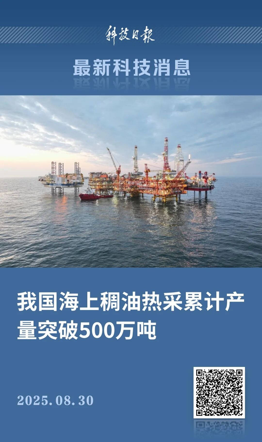 8月30日,中国海油发布消息,我国海上稠油热采技术体系和核心装备规模化应用取得关键性进展,海上稠油热采累计产量超500万吨,标志着我国成为全球首个实现海上稠油规模化热采开发的国家。