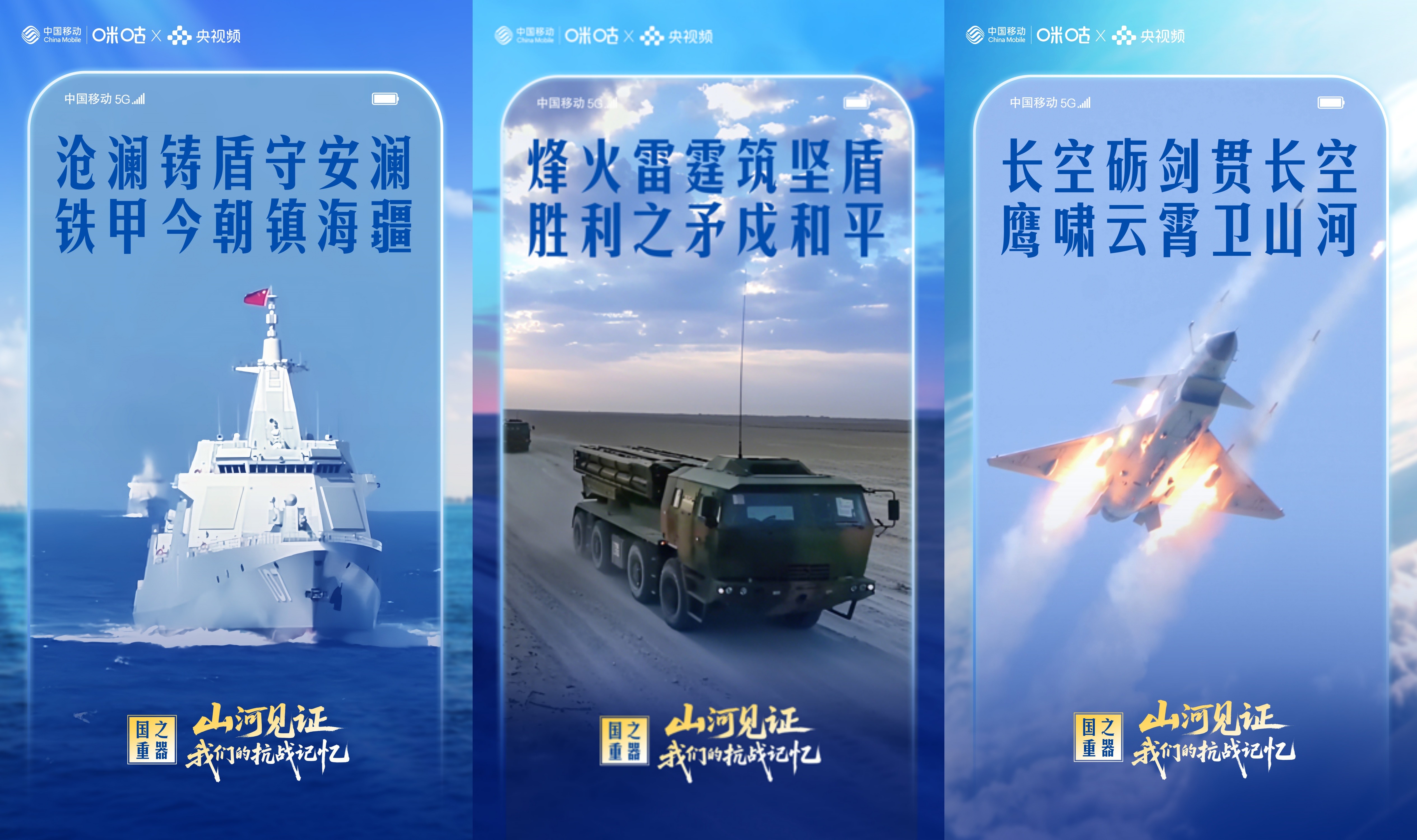 值此历史性时刻,中国移动视频彩铃作为一种独特的内容承载表达方式,集中展现最新的武器装备。用户登录咪咕音乐即可一键订阅,将这份凝聚民族精神与科技成就的“国家记忆”化为日常通话皮肤。