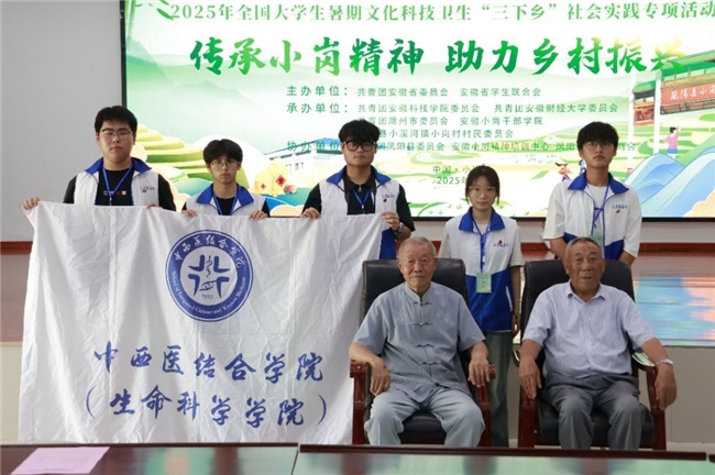 2025年7月16日至20日,安徽中医药大学中西医结合学院“杏林新生代”志愿服务队一行赴安徽省凤阳县小岗村,围绕“生态文化振兴”主题,成功开展了为期五天的暑期“三下乡”社会实践活动。通过专题研学、田间劳作、产业调研与基层对话等多种形式,团队在历史与现实的交融中深入探寻小岗村“敢为人先”精神的当代价值,为推进乡村振兴注入青春力量。通讯员(郭韬、高子豪、方国庆、陈文燕、顾鼎张)