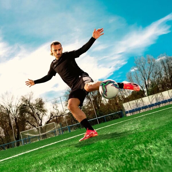 以迪卡侬与AlexSarr合作的CANAVERAL900联名款篮球鞋为例,其核心技术上完全对标顶级赛事需求:中底采用迪卡侬自主研发的VFOAM超临界发泡材料,兼具缓震与回弹,还有防侧翻支撑片和防滑大底,专业属性拉满;与AntoineGriezmann合作的成人短钉足球鞋,同样在速度、触球感与轻量化上达到专业赛事级别。曾经仅见于高端足球鞋的配置,如今以599.9元的定价呈现,让业余足球爱好者也能轻松拥有"球星同款"的专业体验。