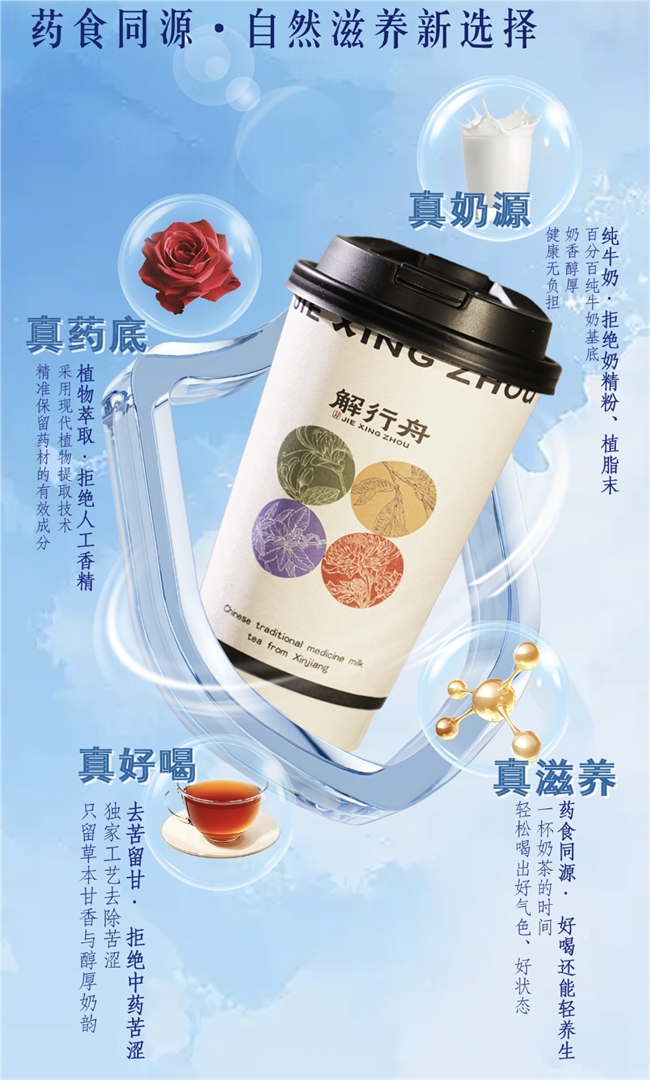 从“金不换”的理性清爽,到“红尘妃子笑”的浪漫细腻,解行舟借MBTI与千人千性的当代话题,让中药奶茶成为年轻人表达自我、连接彼此的新载体。这杯迷你版“新疆味觉”,正以更轻盈的方式,走入日常生活的每一个场景。