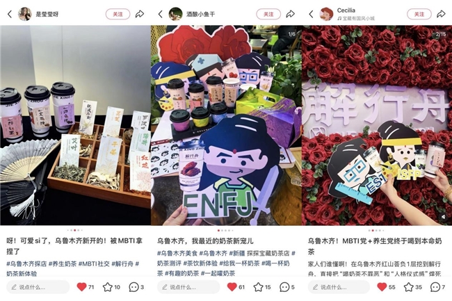 活动首发后,小红书、抖音等平台迅速涌现“解行舟MBTI徽章”开箱视频。许多消费者自发匹配茶饮与人格:例如“金不换”对应“T人”(理性冷静)、“红尘妃子笑”对应“E人”(外向探索)、“荔山雾”对应“F人”(情感细腻),话题#喝解行舟猜我MBTI#阅读量破50万。