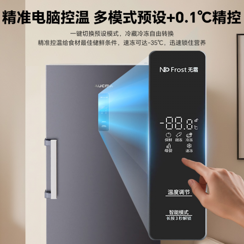 一键深冻锁定自然鲜味,无霜空间解放双手时间,澳柯玛BD-235WPHKSD螺黛青立式冷柜,精准设定打造专属海鲜宝库。